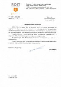 ООО "РЭС" благодарит Вашу компанию за оказанные услуги по поиску организаций на территории Китая, занимающихся изготовлением производственных технологических линий и оборудования, а также оказанную помощь в сопровождении наших специалистов при посещении заводов, качественный и оперативный перевод при ведении переговоров. Профессионализм и ответственность Ваших сотрудников Макаренко Ю.С. и Лавринович Я.О. способствовали достижению желаемого результата. Мы рекомендуем Вашу компанию, всем заинтересованным в получении подобных услуг. Желаем процветания, дальнейшего успешного развития в бизнесе и надеемся на дальнейшее взаимовыгодное сотрудничество.